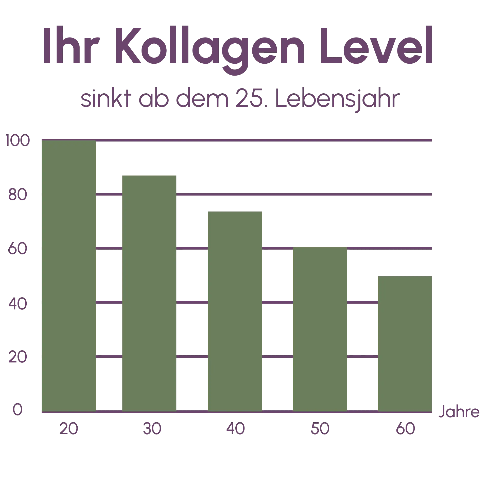 - Ab ca. 25 Jahren – die körpereigene Kollagenproduktion verändert sich mit zunehmendem Alter