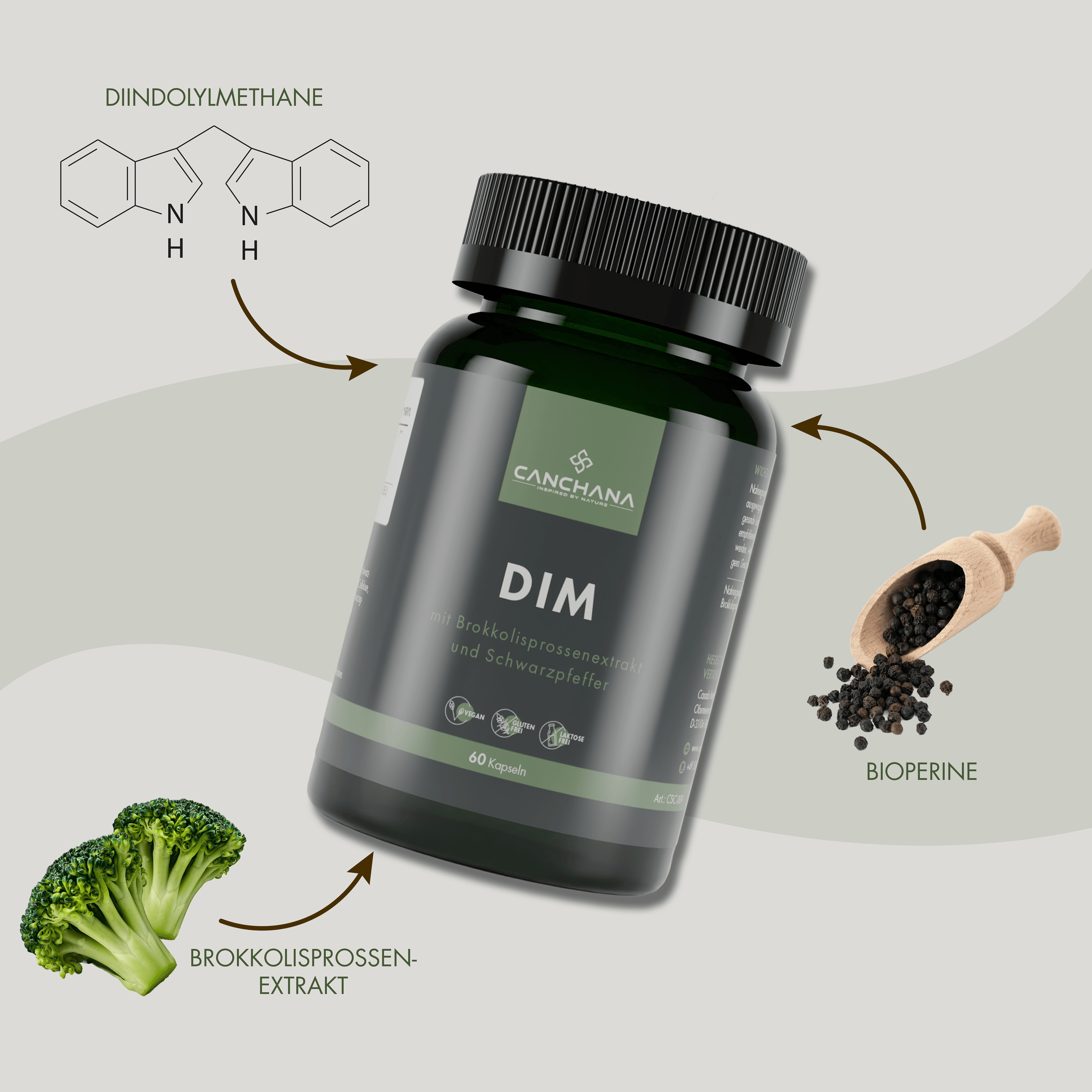 DIM (Diindolylmethan) ist ein natürlicher Pflanzenstoff, der beim Verzehr von Kreuzblütlern wie Brokkoli, Blumenkohl oder Kohl entsteht. Seit langem ist er Gegenstand der Ernährungsforschung und wird als Bestandteil einer bewussten, ganzheitlichen Ernährung geschätzt.