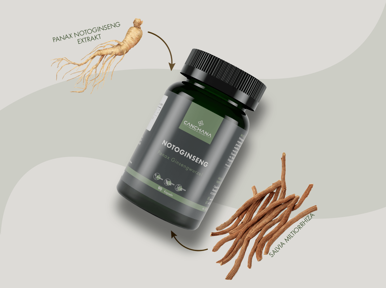 Notoginseng kann problemlos mit anderen Nahrungsergänzungen kombiniert werden – häufig genutzt werden z. B. Omega-3 Fettsäuren oder Coenzym Q10.